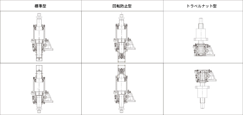 ◆ 構造タイプ: 標準型、回転防止型、トラベルナット型。